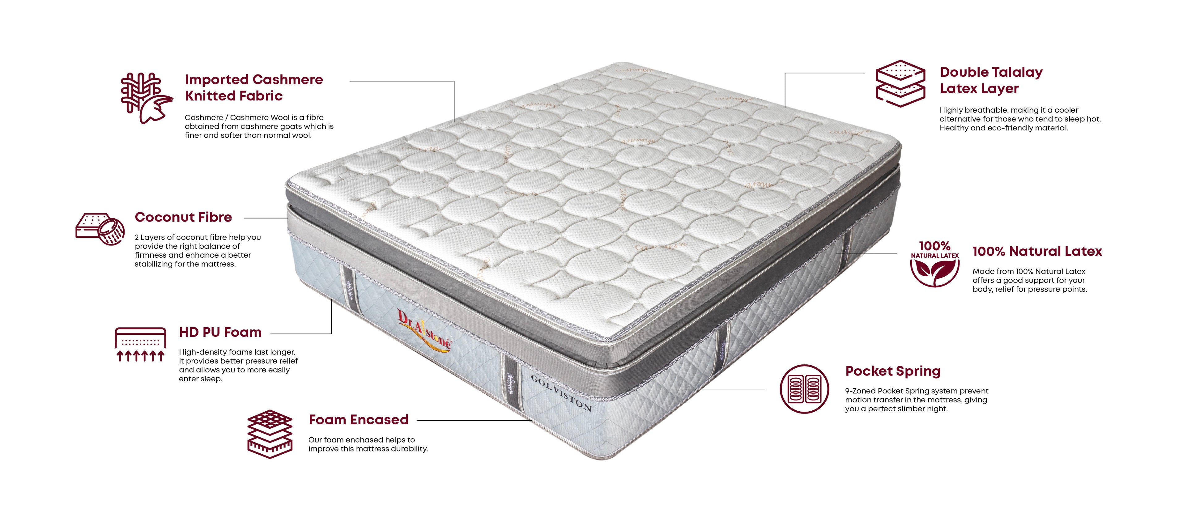 Dr.Alstone New Temperature Regulation Technology helps you to maintain your body’s temperature without you feeling too hot or cold while having a good night sleep.