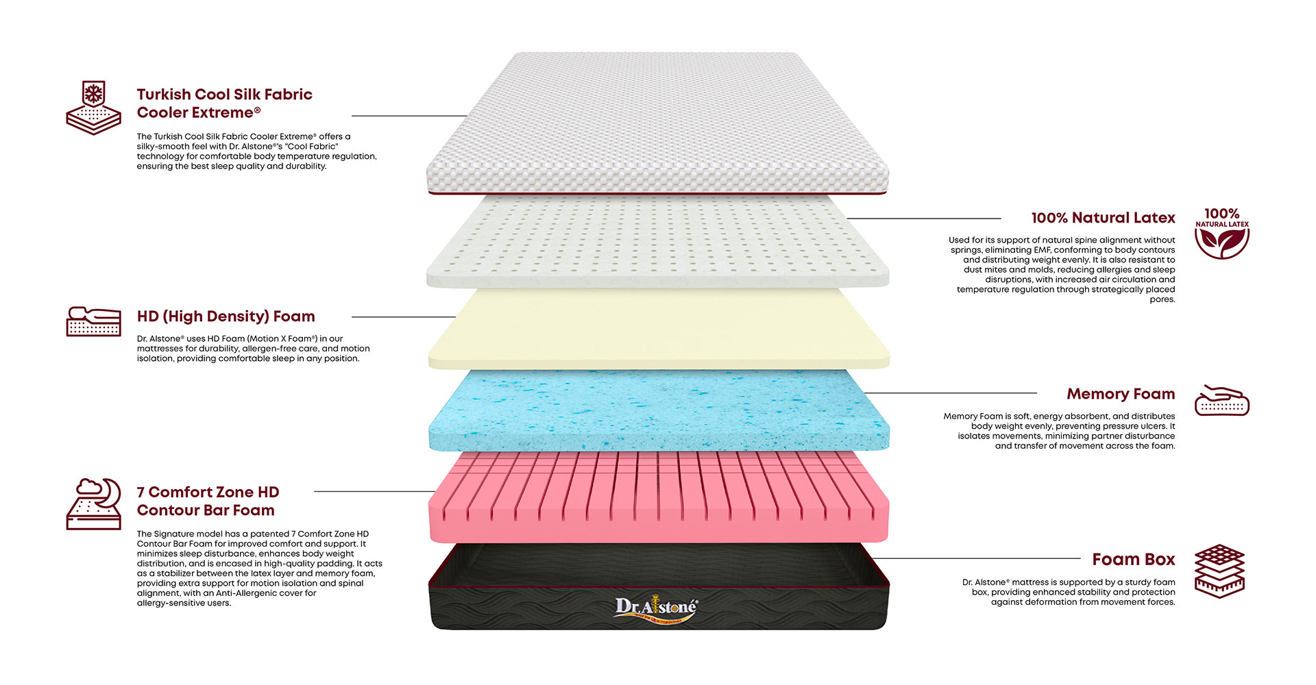 Dr.Alstone New Temperature Regulation Technology helps you to maintain your body’s temperature without you feeling too hot or cold while having a good night sleep.