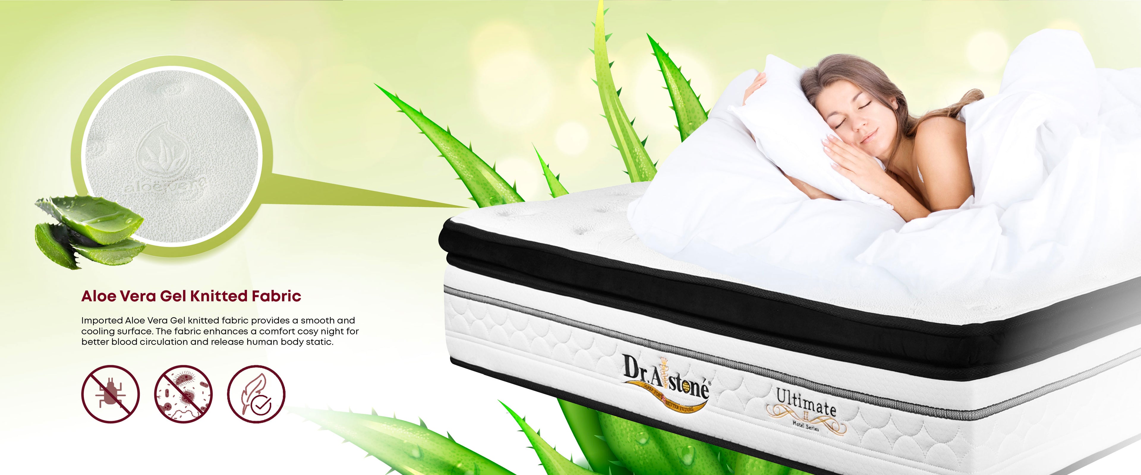 Dr.Alstone Anti Bacterial Technology will provides peaceful health risk free while sleeping on Dr.Alstone Mattress.